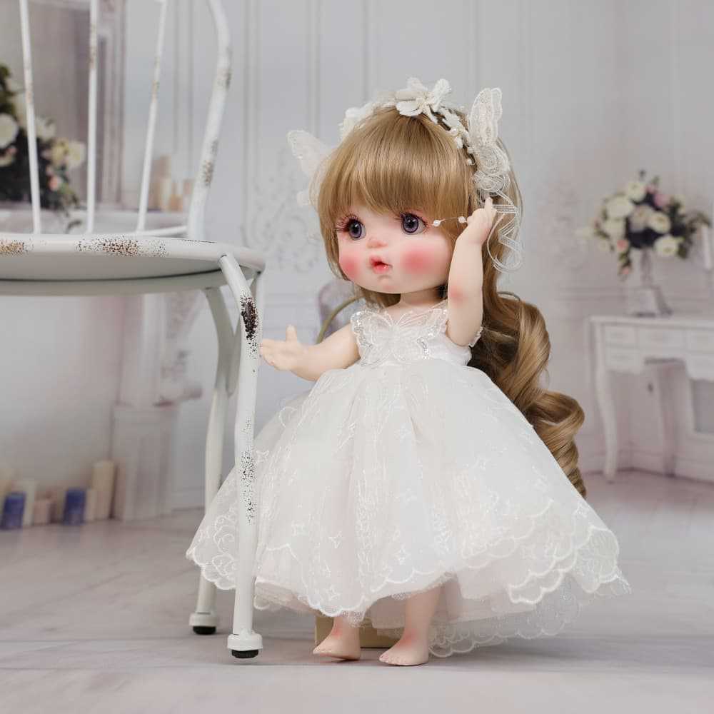 Meet our most delicate creation yet. Standing at a charming 10 inches (25cm), this petite princess is designed to bring a touch of magic to your desk, your shelf, or the palm of your hand. Though small in size, she carries the full weight of Larin Nursery’s artistry.