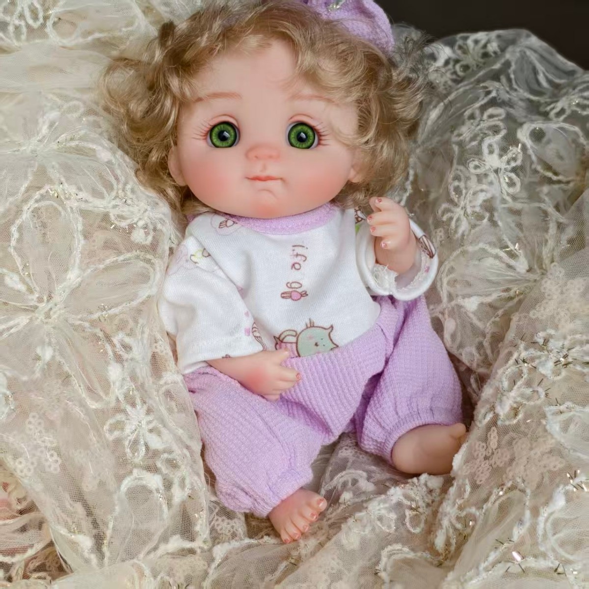 Most dolls just look; our Larin Petite Series truly sees. This 10-inch miracle features custom-crafted Emerald Green glass eyes that possess a depth and clarity usually reserved for life-sized masterpieces. Her gentle, pouting expression captures that fleeting moment of a baby’s peaceful slumber.