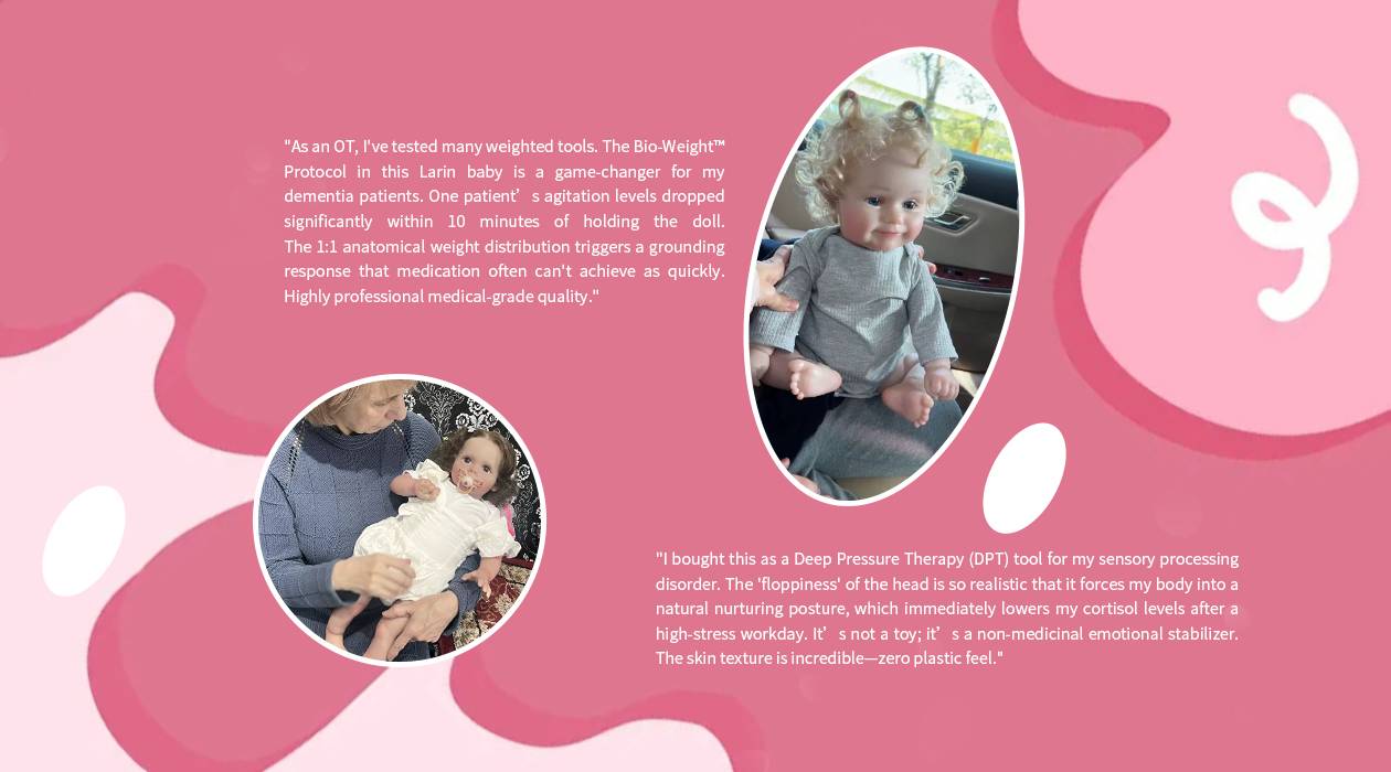 We are committed to using only the highest Medical-Grade Soft Vinyl, ensuring every baby is 100% non-toxic and meets ASTM F963 & EN71 safety standards. Infused with a gentle baby powder scent, our babies are phthalate-free and perfectly safe for sensitive therapeutic environments and long-term companionship.