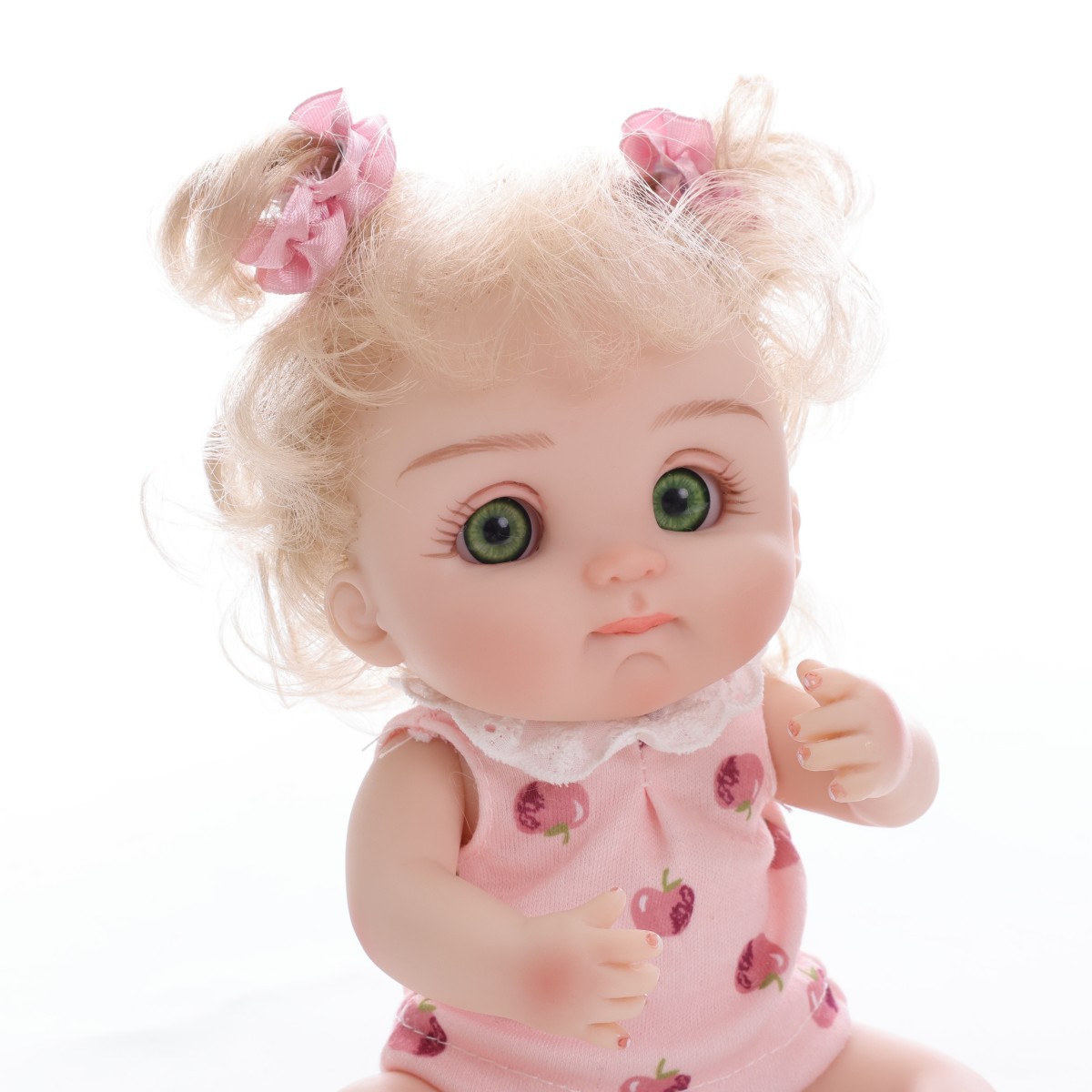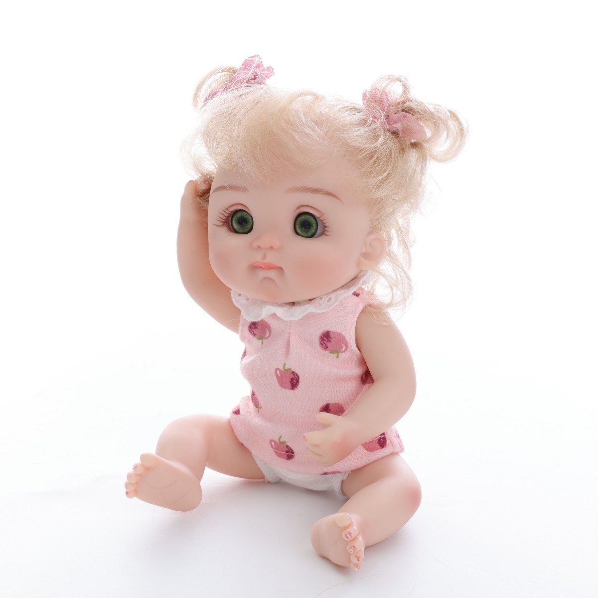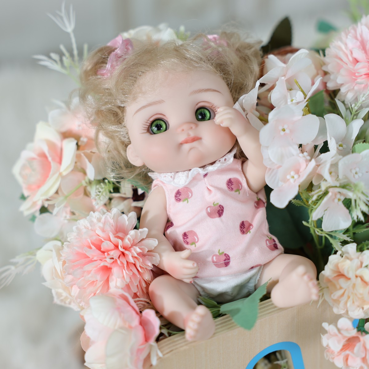 10 Inch Miniature Reborn Baby Doll – Realistic Soft Vinyl Girl with Emerald Green Eyes & Blonde Curls