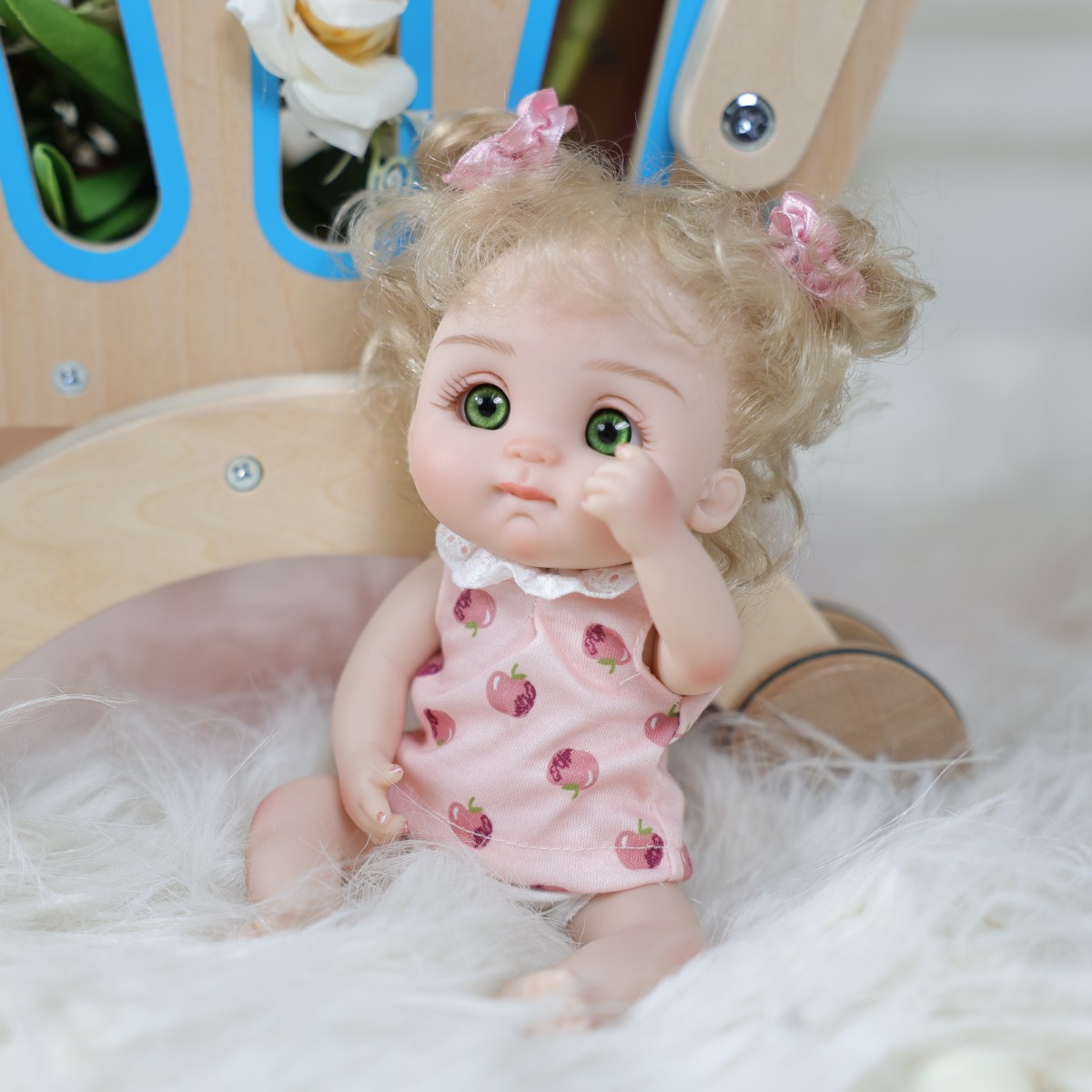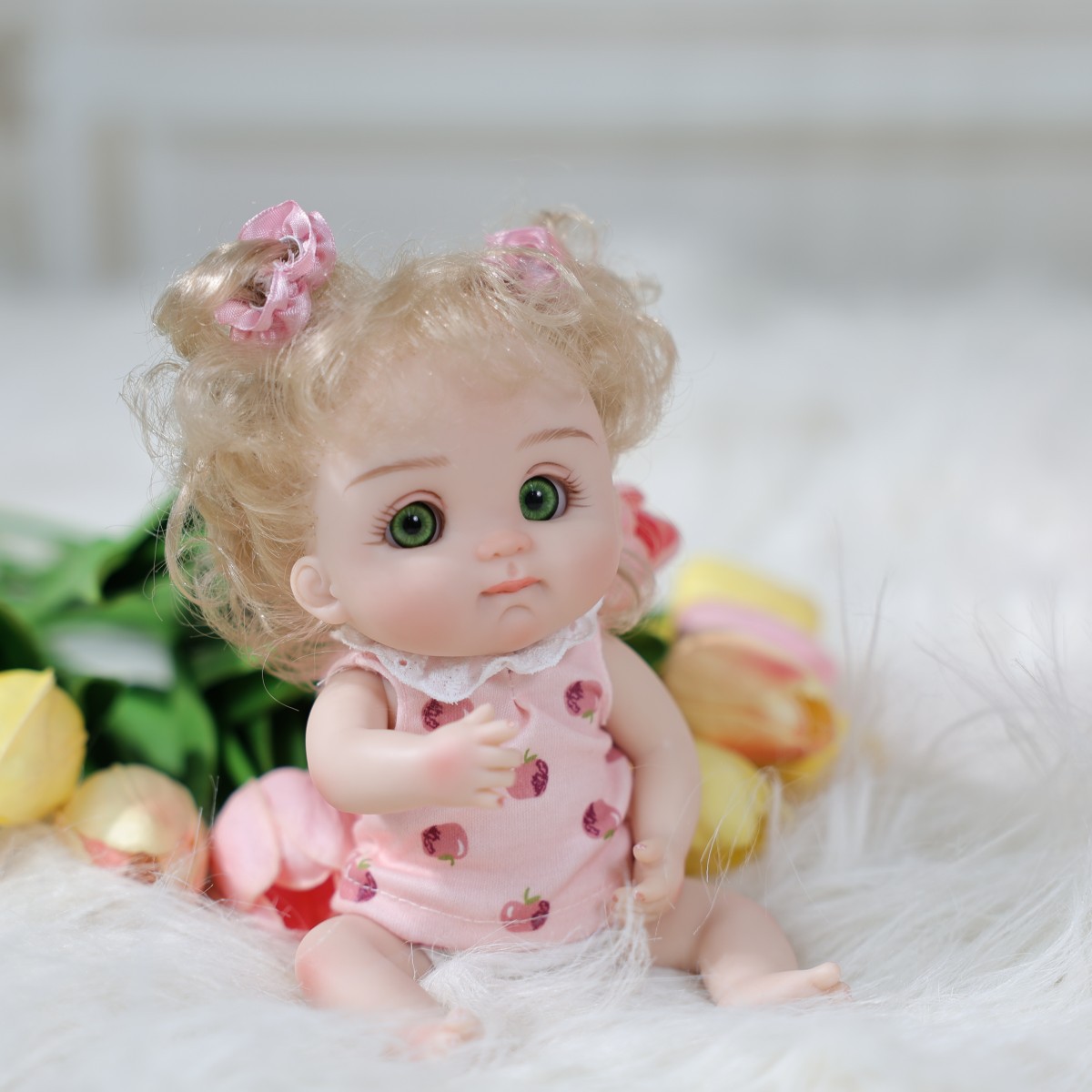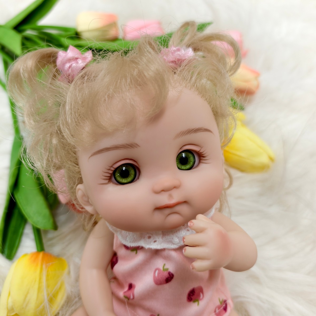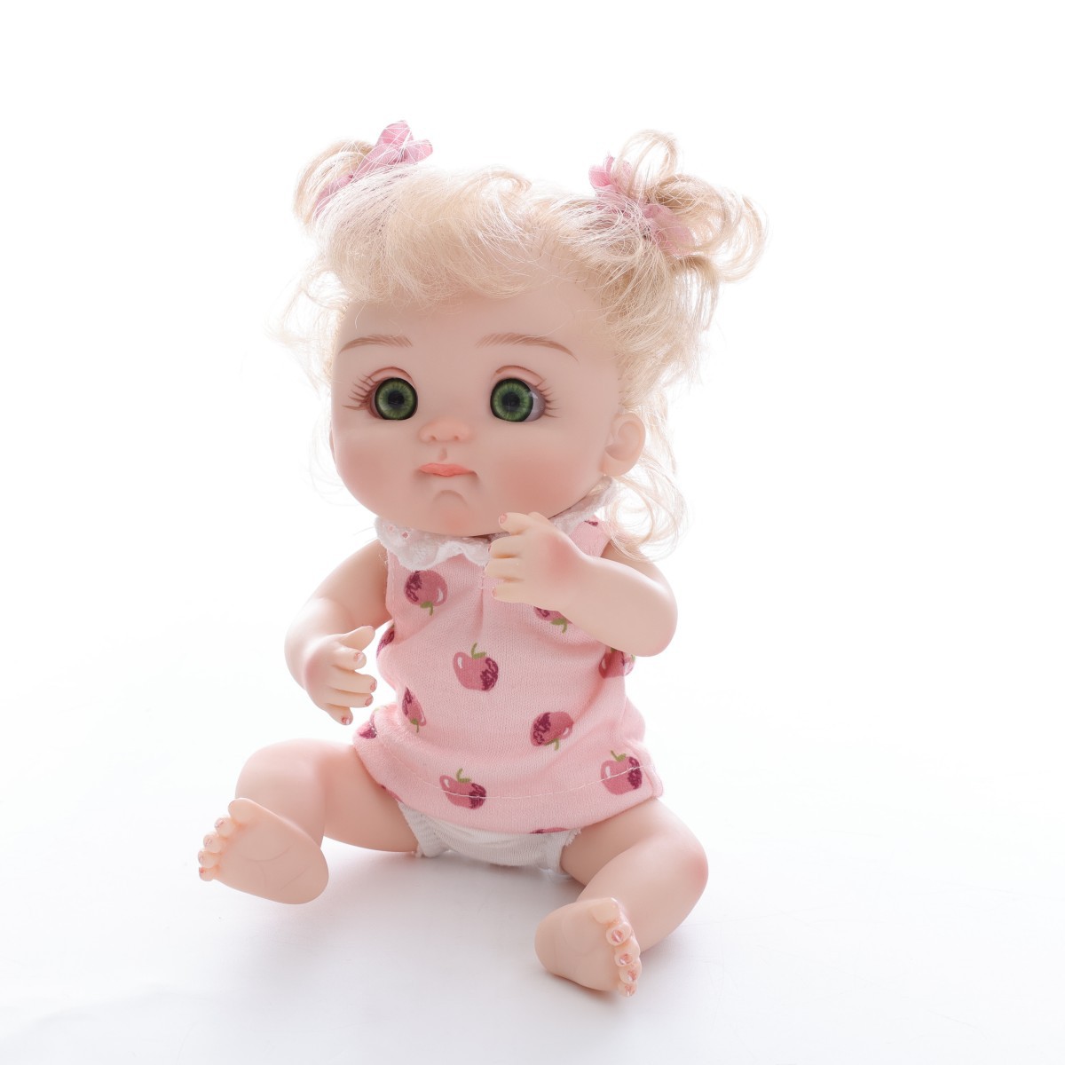 10 Inch Miniature Reborn Baby Doll – Realistic Soft Vinyl Girl with Emerald Green Eyes & Blonde Curls